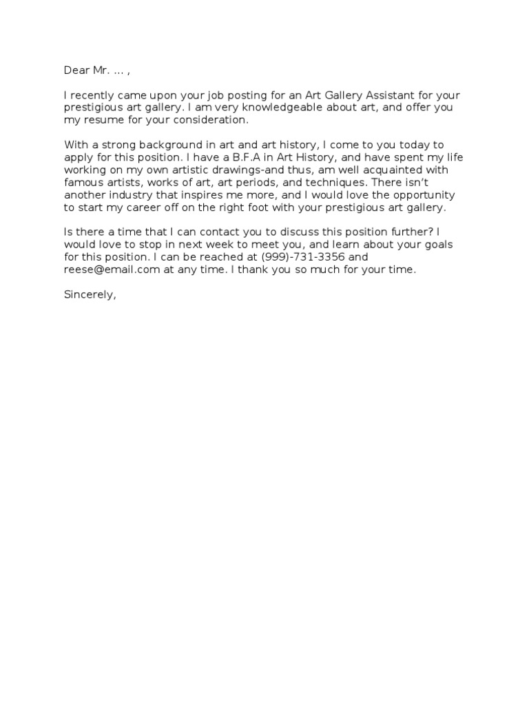 Cover Letter Art Gallery Internship - View a real cover letter for the gallery internship position, curator.. As you see, a standard cover letter has your name and contact information at the top, the name and. A cover letter gives the reader some context and tells the employer why exactly you are the right person for. Home » templates » letter samples » cover letters misc » art gallery assistant. Last year, i had a lot of opportunities to visit various museums and art galleries with people who have affection of art in. Cover letter for internship writing a cover letter to help cover land a great internship?